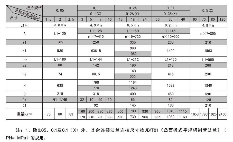 2、n=公稱冷卻面積/單板冷卻面積+1,表示板片數。