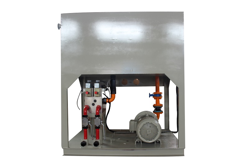 系統裝有兩套可調流量微型計量泵.正常工作時.油泵一臺工作,一臺備用,在特殊需要時亦可允許同時起動兩泵,系統最高壓力為10MPa,最低壓力為4MPa,油缸上行速度由調節油泵流量來調定,油溫是由裝在油箱上的電接點雙金屬溫度計來控制電加熱器的開關,系統設有一臺精度為10μm的精過濾器,確保液壓油的清潔。過濾器壓差達到0.35MPa時報婪,需及時更換過濾器濾芯。 油站在啟動窯的同時接通工作油泵,迫使窯體向上移動,此時回油的二位三通電磁閥的電磁鐵不通電,電磁閥處于關閉狀態,當擋輪座上行碰到上行限位開關時,油泵電機斷電,電磁閥通電并打開閥門,此時靠窯體的自重使 油缸中的油經精過濾器、節流閥、二位三通電磁閥排回油箱。油缸下滑碰到下限開關時,二位三通電磁閥斷電,關閉回油管路,同時油泵啟動,重復上述推窯上行動作。 如系統非正常工作,當油缸上行或下行時,由于第一組限位開關發生故障而碰到上行或下行開關時,應發出報警信號,當上行或下行繼續而碰到極限位開關時,應立即停主機。 |