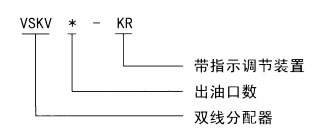 VSKV-KR型雙線分配器正面設(shè)上下二排出油口,分配器活塞正反向動作時分別從上排和下排的出油口排出潤滑脂。還可以從指示桿的動作直接觀察分配器的工作情況,并可通過調(diào)整螺釘在規(guī)定范圍內(nèi)調(diào)整出油口的給油量。 該型分配器適用于公稱壓力為40MPa 的雙線式干油集中潤滑系統(tǒng)中,它在兩條供油主管交替的供油壓力作用下,直接由供油壓力控制活塞動作給油,完成向潤滑點定量分配潤滑脂的功能。 | ![]() |