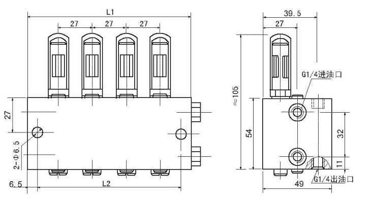 分配器適用于公稱壓力為40MPa的雙線式干油集中潤滑系統中,作為一種計量給油裝置,它在兩條供油主管交替供油壓力作用下,直接由供油壓力控制活塞動作給油,完成向潤滑點定量分配潤滑脂的功能。 VSN-KR型系列雙線分配器上下面均有出口,分配器活塞正反面動作時分別從上面和下面的出油口排出潤滑脂。可以從指示桿的動作直接觀察分配器的工作情況,同時還可以通過調整螺釘在規定范圍內調整出油口的給油量。 | ![]() |